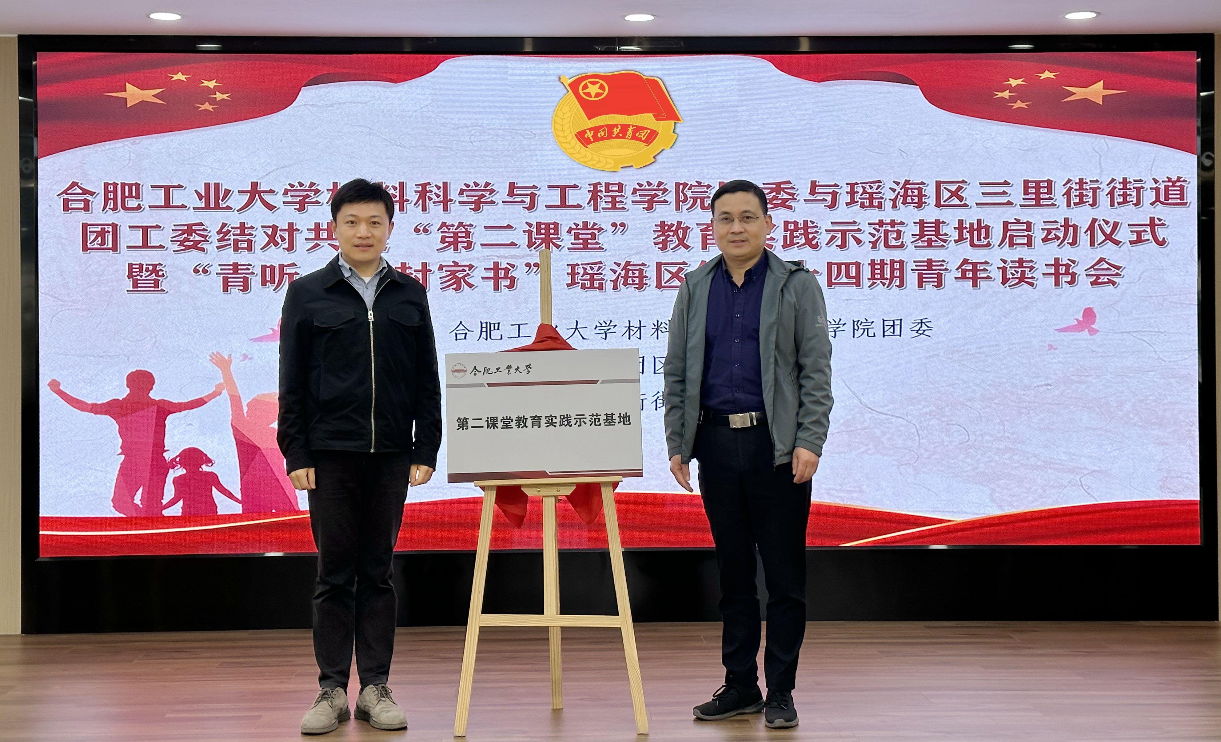 启动仪式上,双方就合肥工业大学“第二课堂”教育实践示范基地进行了揭牌仪式,同时,学院与三里街街道团工委签署共建协议,学生马翊轩代表进行发言。